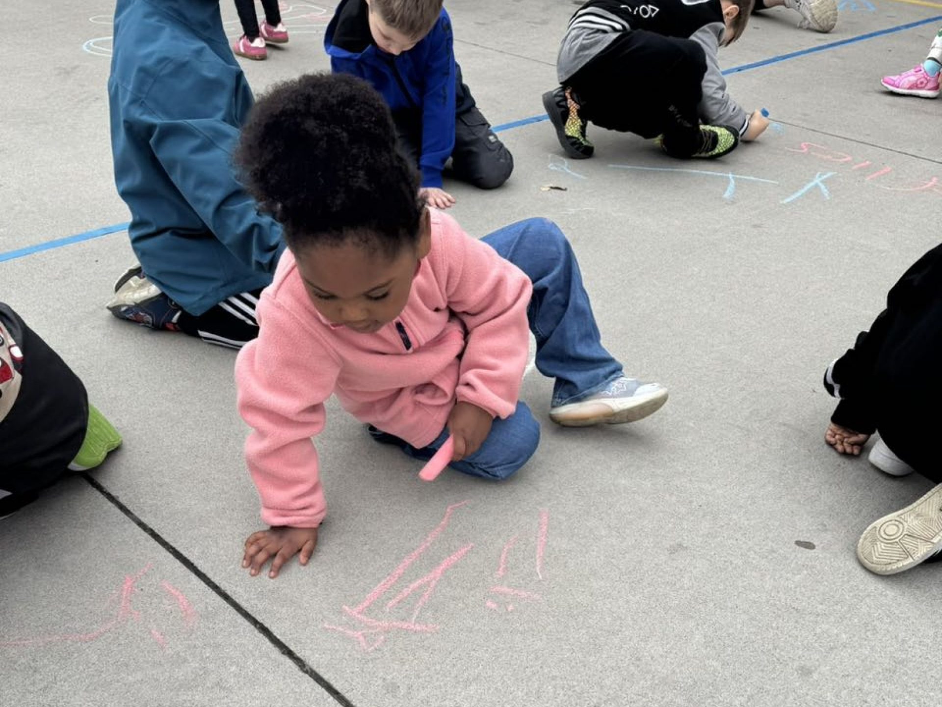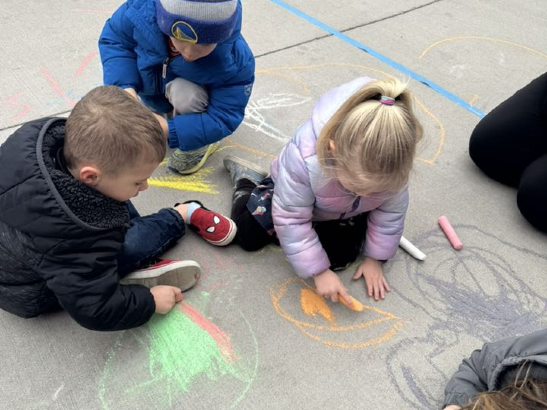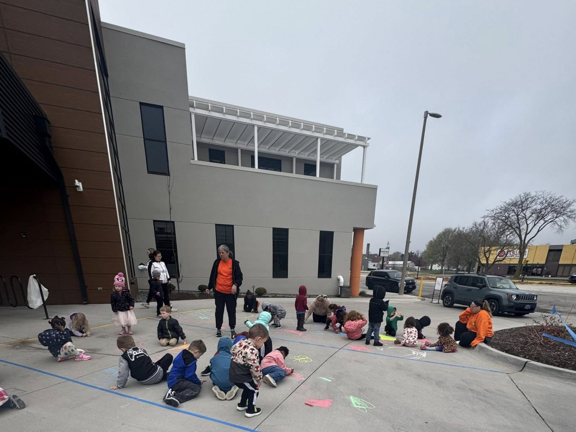 Thursday was Artsy Thursday. Students participated in arts and crafts and worked together on one large masterpiece. Using chalk, students worked together to make the entrance of the building beautiful.
