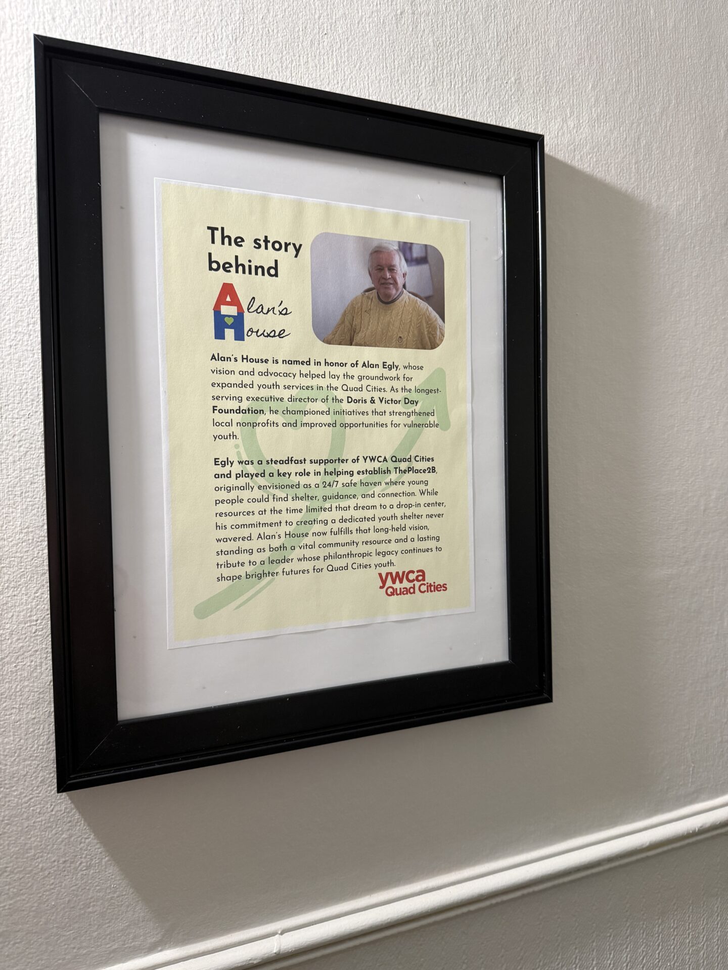 Alan’s House is named in honor of Alan Egly, whose advocacy and leadership helped lay the groundwork for expanded youth services in the Quad Cities. As the longest-serving Executive Director of the Doris & Victor Day Foundation, Egly championed initiatives that strengthened local nonprofits and created opportunities for vulnerable youth.