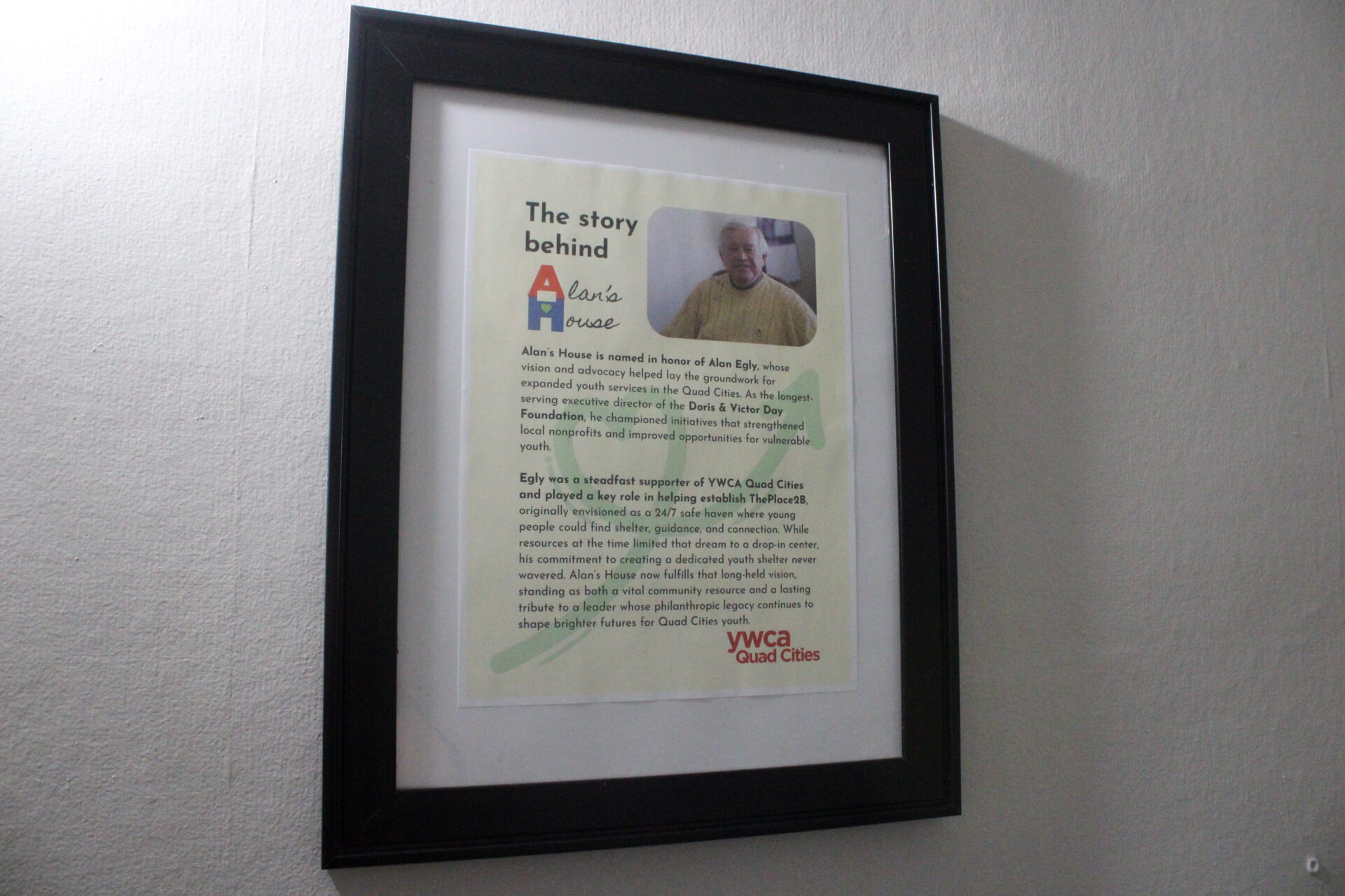 He was a steadfast supporter of YWCA Quad Cities and played a key role in helping establish ThePlace2B, originally envisioned as a 24/7 safe haven for young people seeking shelter and connection. While resources at the time limited that dream to a drop-in center, Egly never stopped believing in the need for a dedicated youth shelter.